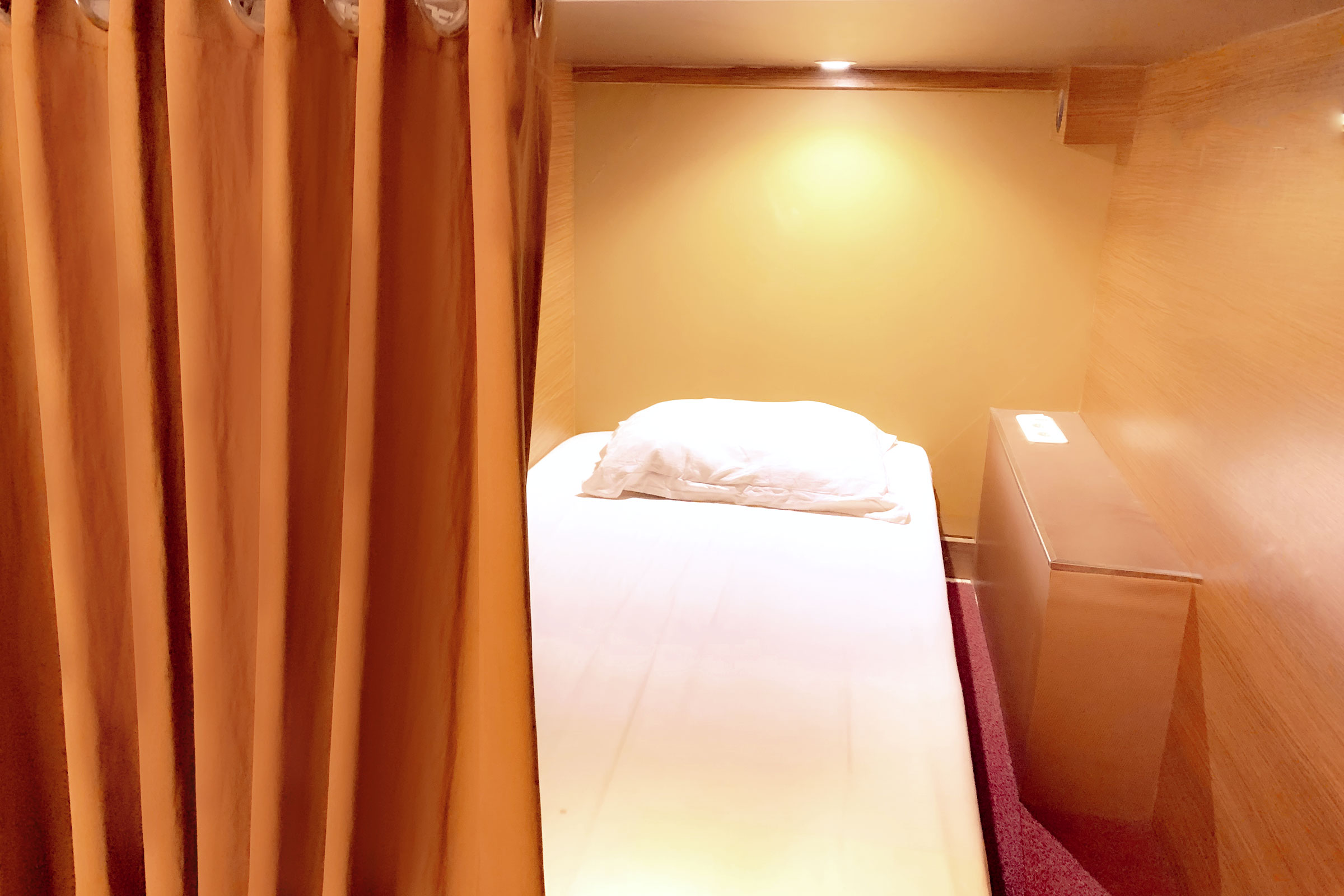 Classic Capsule Room merupakan tipe kamar pilihan ideal bagi para pelancong solo yang menginginkan pengalaman menginap yang efisien dan nyaman. Kamar ini menawarkan desain kapsul yang modern dengan satu tempat tidur single untuk satu orang dewasa. Dengan fasilitas AC dingin, tamu dapat menikmati kesejukan optimal dalam kapsul mereka. Koneksi internet yang cepat melalui high-speed Wifi memastikan tetap terhubung dengan dunia luar. Kamar ini juga menyediakan fasilitas kamar mandi bersama dengan air panas untuk kenyamanan tamu. Classic Capsule Room memberikan suasana yang minimalis namun fungsional, menciptakan pengalaman menginap yang efisien dan terjangkau.”